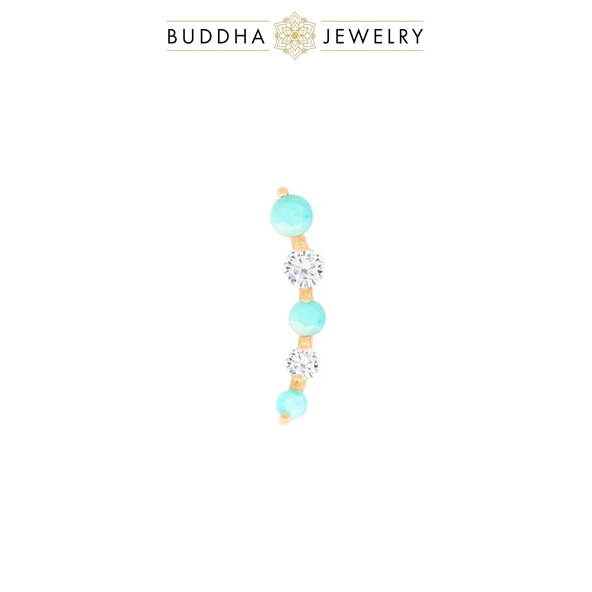 - Gemstone: (1) 1.5mm, (1) 1.3mm, and (1) 1.1mm cabochon American Turquoise, with (1) 1.4mm and (1) 1.2mm round faceted CZs