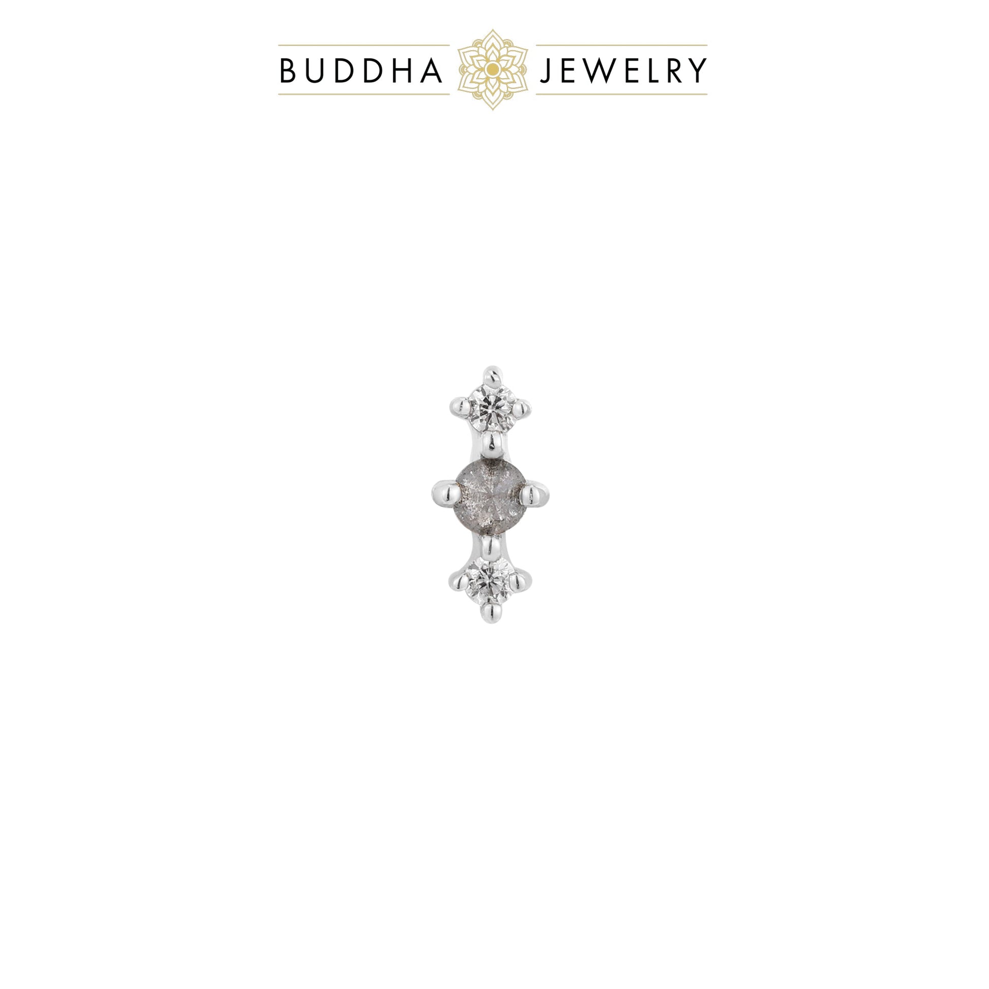 Channel your inner dark angel with this Ghost Flower - Grey Diamond threadless end. The sleek grey diamond and two CZs will add a hint of glam to any piercing. Unearthly beautiful and wonderfully unique, this one's sure to make heads turn!