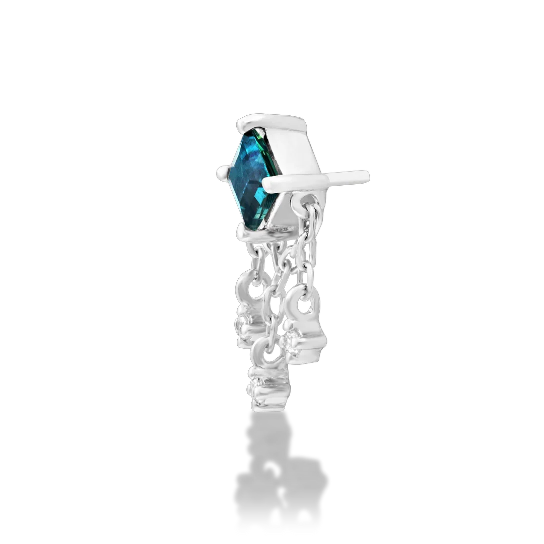 Iolite is popular in jewelry for its rich, inky color and natural sparkle, offering a unique and affordable alternative to sapphires and tanzanite. It’s often used in both fine jewelry and minimalist body jewelry for a sophisticated touch.