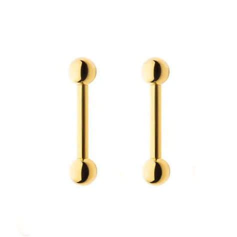 Elevate your ear piercing game with the Echo - Pair of Titanium Internally 24K Gold Plate Threaded Micro Barbells. These stunning barbells are crafted from high-quality titanium, ensuring durability and a lightweight feel, making them perfect for everyday wear. The 24K gold plating adds a touch of elegance, allowing you to shine in any setting.