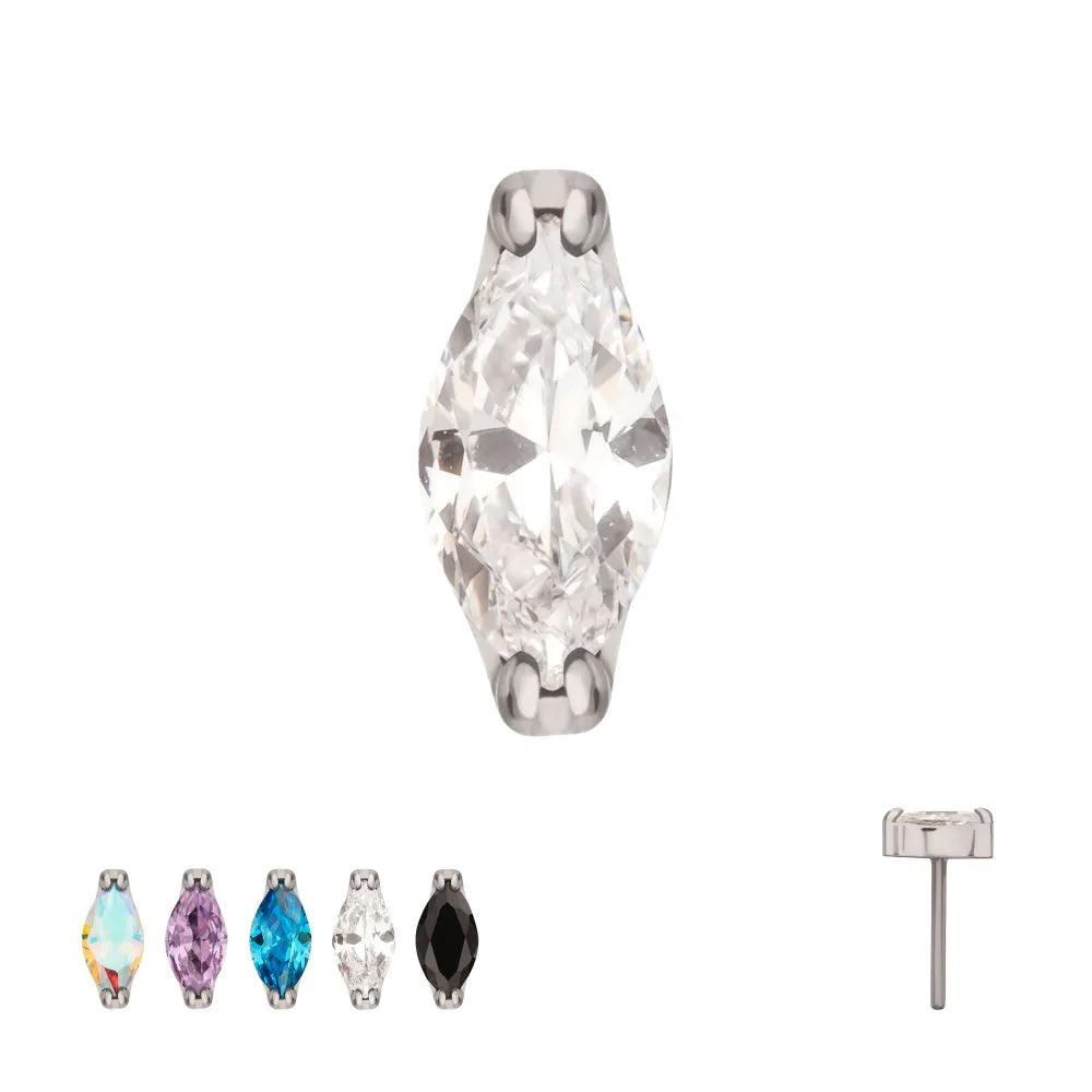 Initial Piercing - Titanium Threadless Double V-Prong 3mm Marquise Gem Top